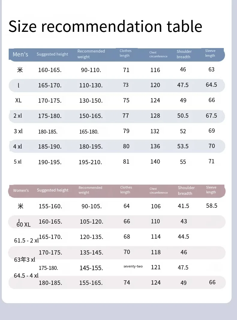 | Size | M, L, XL, 2XL, 3XL, 4XL |
