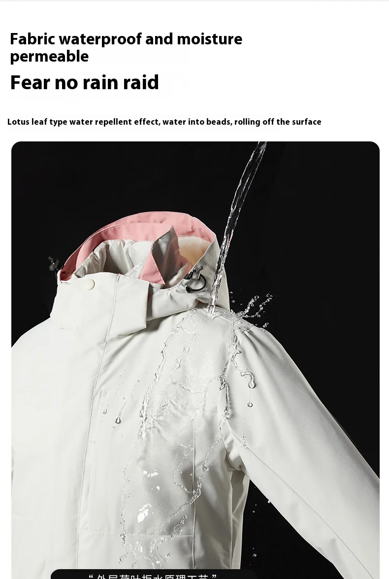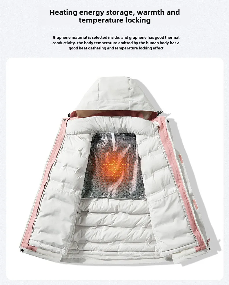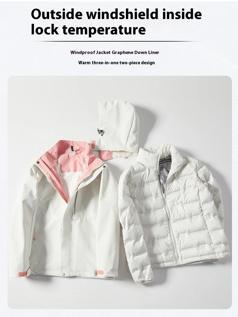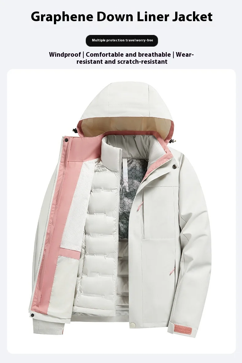 Unisex Detachable Heattech Three-in-One Winter Jacket Windproof Waterproof Stand Collar Zipper for Men for Mountain Outdoor