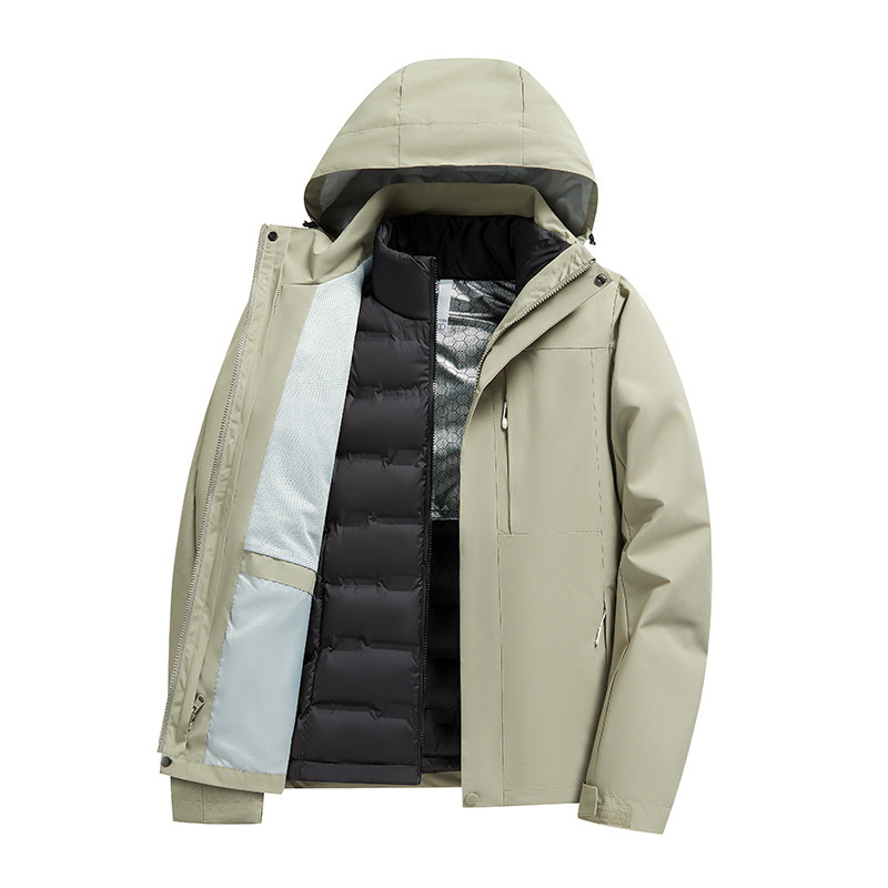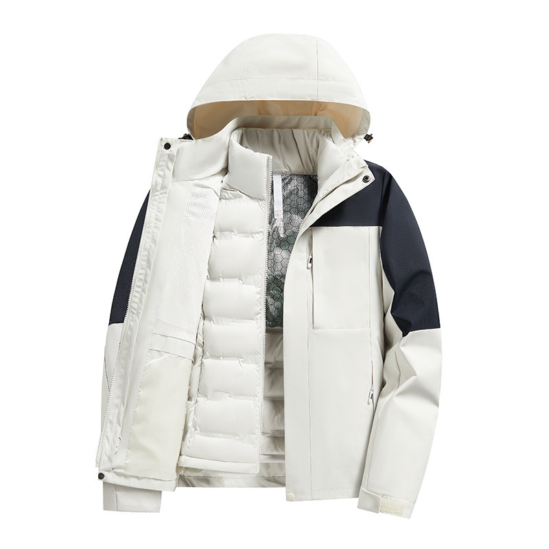 Unisex Detachable Heattech Three-in-One Winter Jacket Windproof Waterproof Stand Collar Zipper for Men for Mountain Outdoor