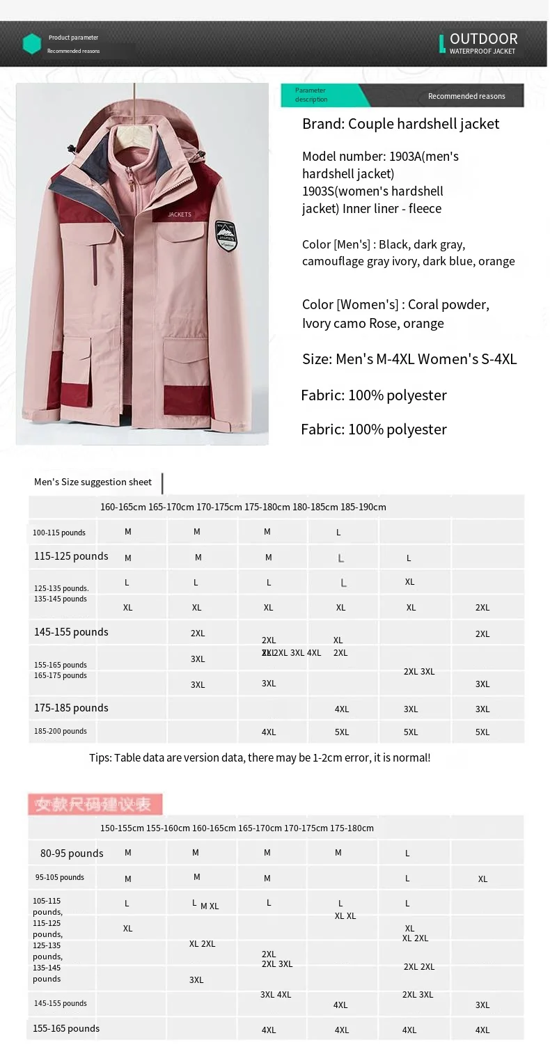 Unisex New Couple’s Assault Outdoor Sports Jacket Zipper Closure Two-Piece Suit Factory Direct Printable Logo for Adults