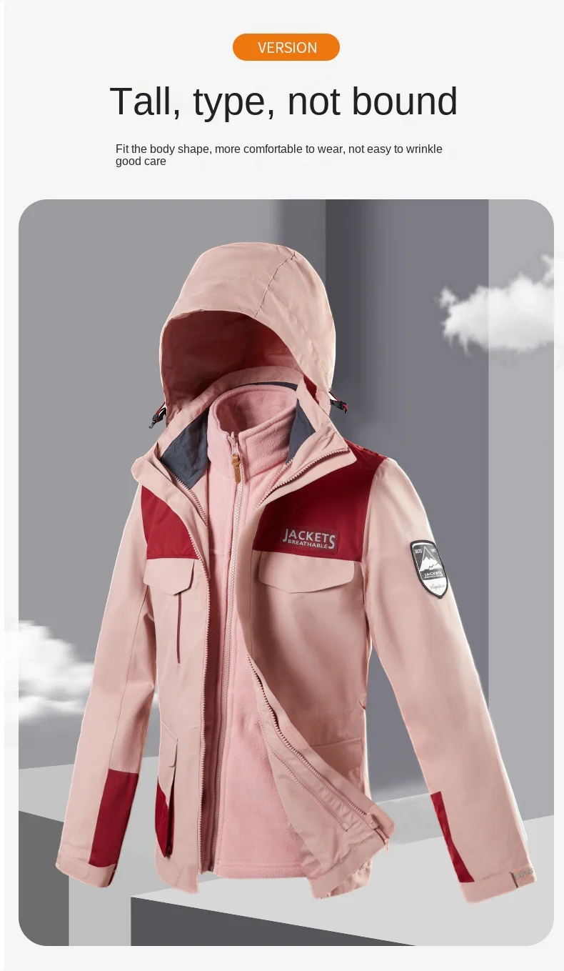2024 Unisex Three-in-One Outdoor Assault Jacket Adults Men Women Autumn Winter Fleece-Lined Thickening Cotton Liner Two-Piece