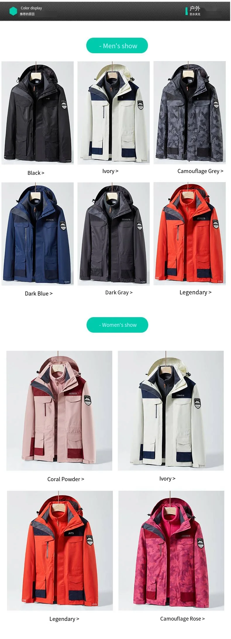 | Color | Men's-black [fleece liner]], Men's-camouflage grey [fleece liner]], Men's-dark blue [fleece liner]], Men's-dark gray [fleece liner]], Men's-ivory [fleece liner]], Men's-orange [fleece liner]], Women-camouflage red [fleece liner]], Women-coral powder [fleece liner]], Women-ivory [fleece liner]], Women-orange [fleece liner]] |