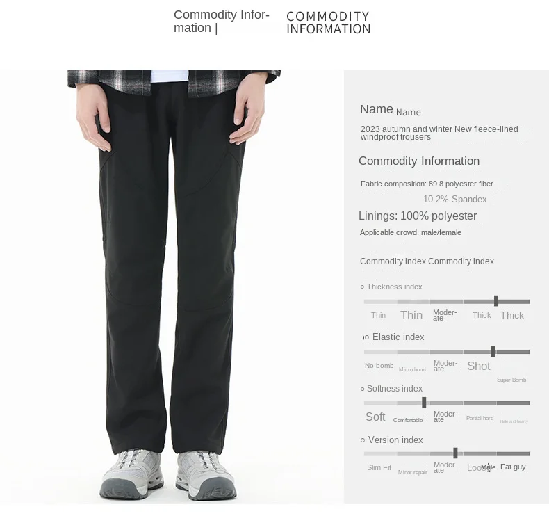 Unisex Men’s Women’s Casual Graphene Charge Pants Outdoor Sports Warm Fleece-Lined Windproof Waterproof Wear-Resistant Mid Flat