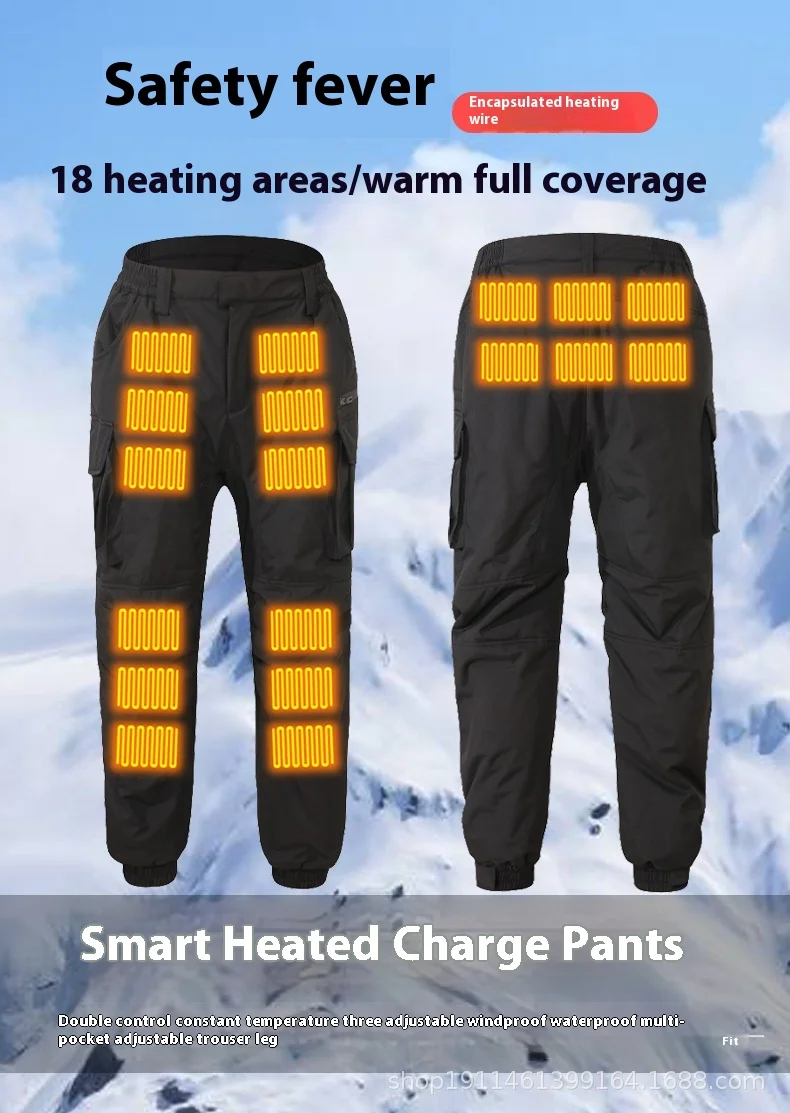 Unisex Smart Heating Pants for Winter Windproof Warm Safety Waist Button Decoration Flat Design for Men Women’s Outdoor Leisure