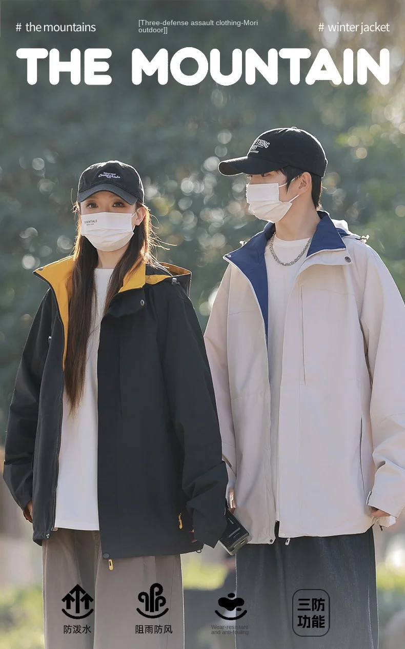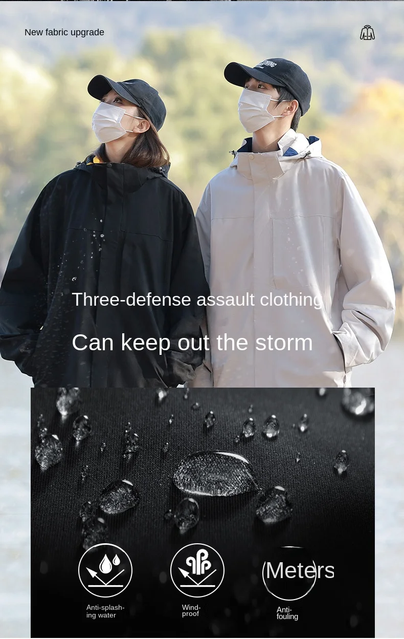 2024 Unisex Three-in-One Outdoor Assault Jacket Adults Men Women Autumn Winter Fleece-Lined Thickening Cotton Liner Two-Piece