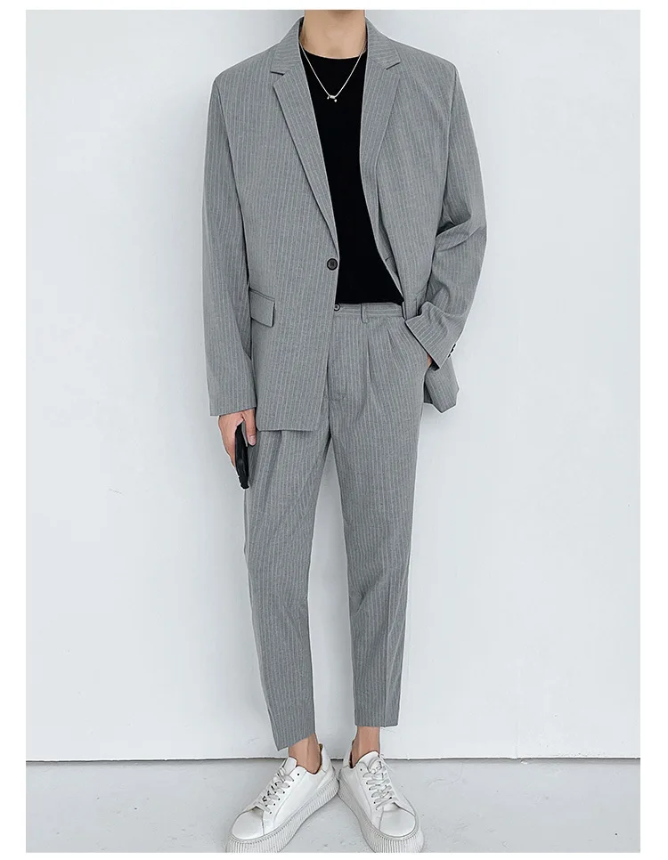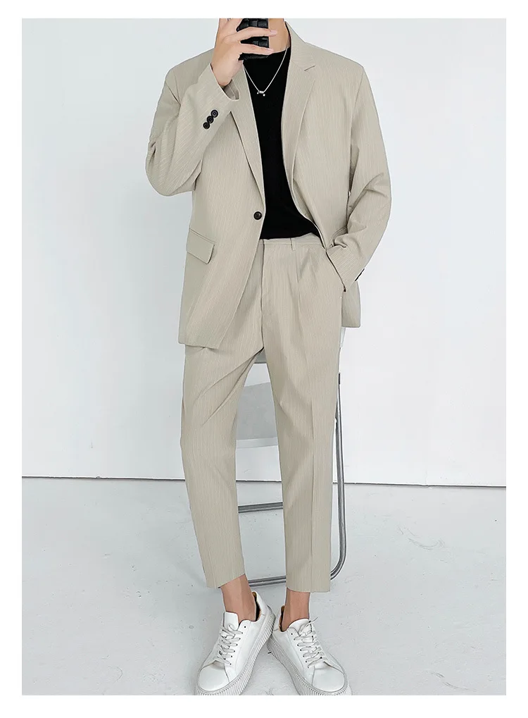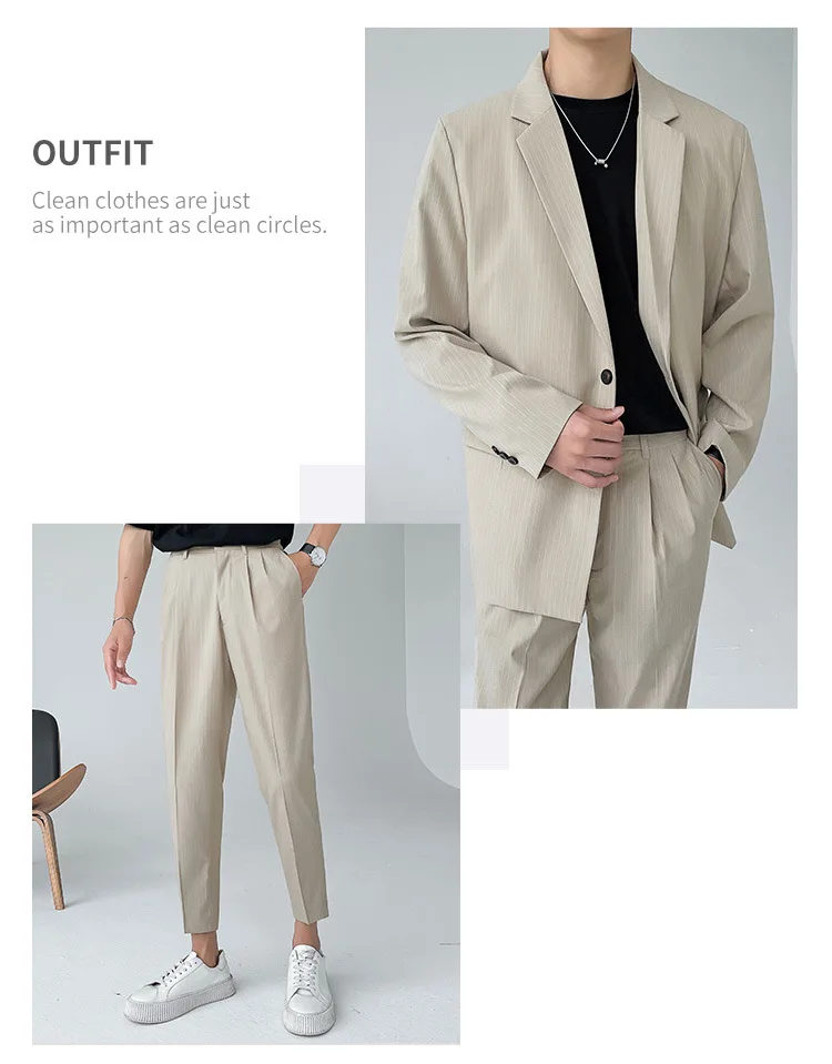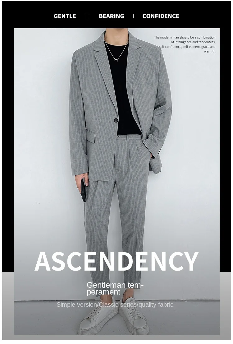 • 2024 Men’s High-End Korean Slim Fit Business Suit Single Breasted Zipper Fly Pants Light Familiar Custom Print Worsted Foreign