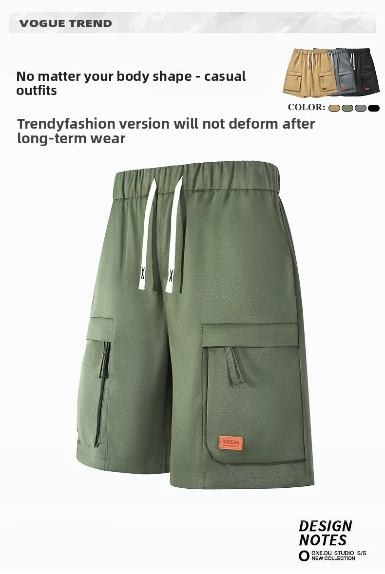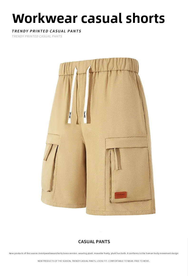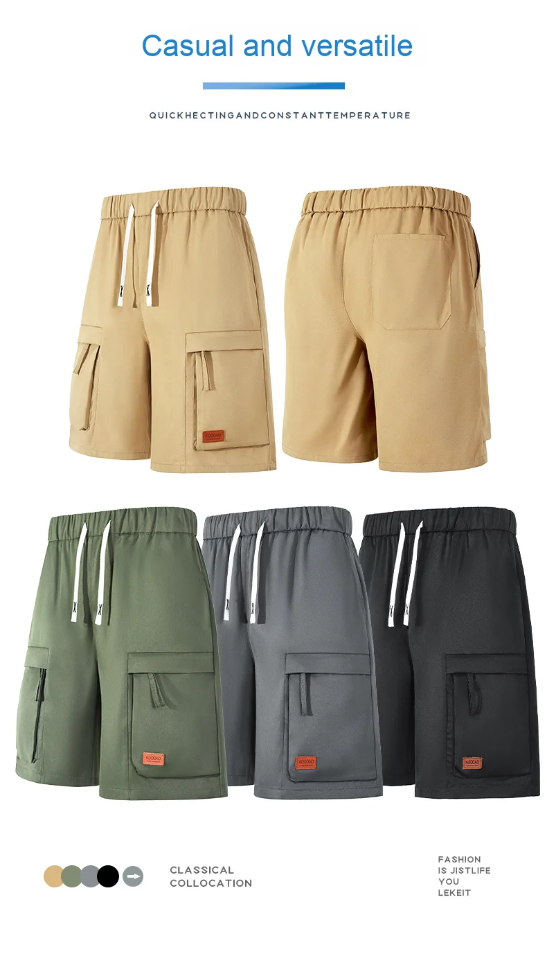 Xiin Men’s Casual Style Large Size Summer Cargo Shorts Custom Designed Five-Point Pants Drawstring Closure Solid Hot Mid Shorts