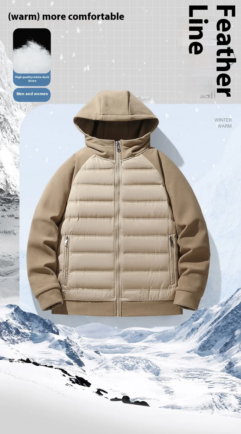 XL Hot Knitting Splicing Outdoor Light Jacket Canvas Zipper Casual Winter Sports Hooded Outerwear Cross-Border for Men Patchwork