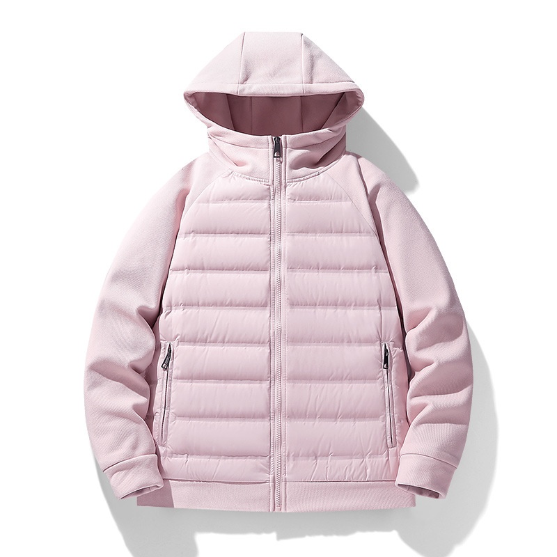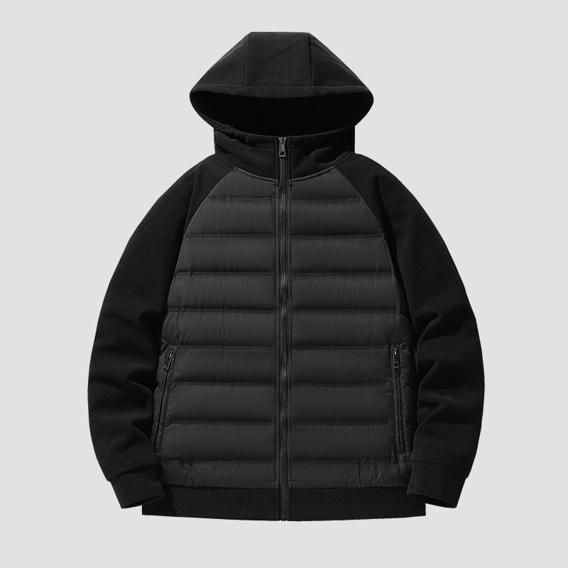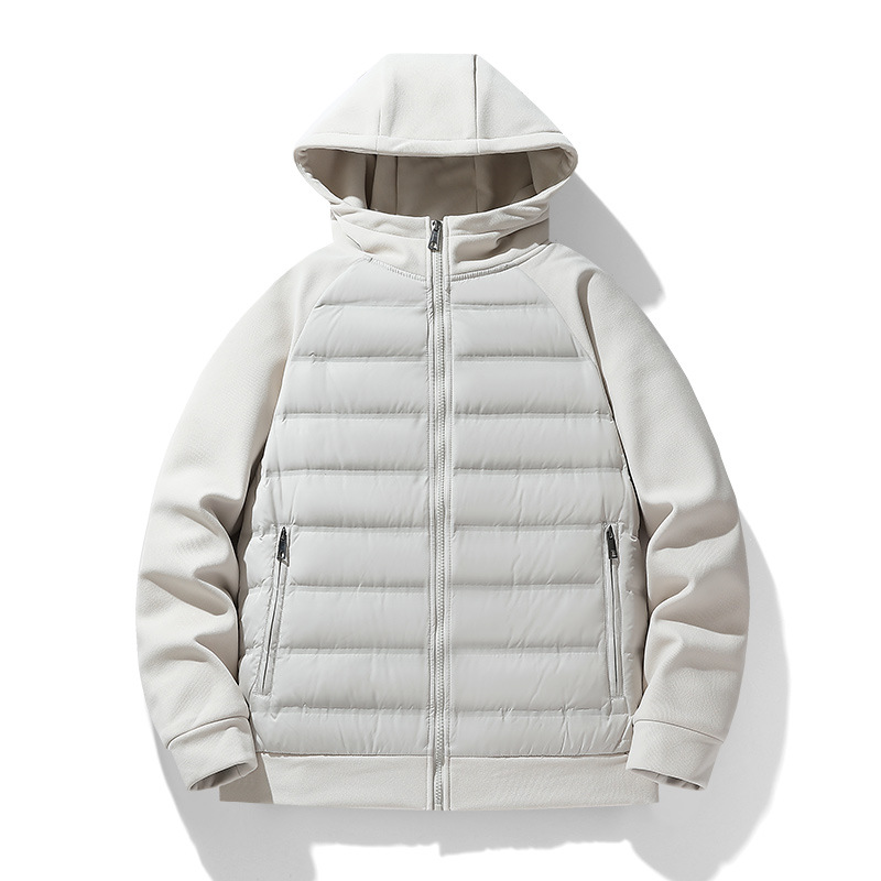 XL Hot Knitting Splicing Outdoor Light Jacket Canvas Zipper Casual Winter Sports Hooded Outerwear Cross-Border for Men Patchwork